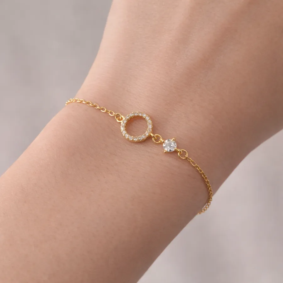 Halo - Bracelet avec cercle serti de pierres, finition or ou argent 925