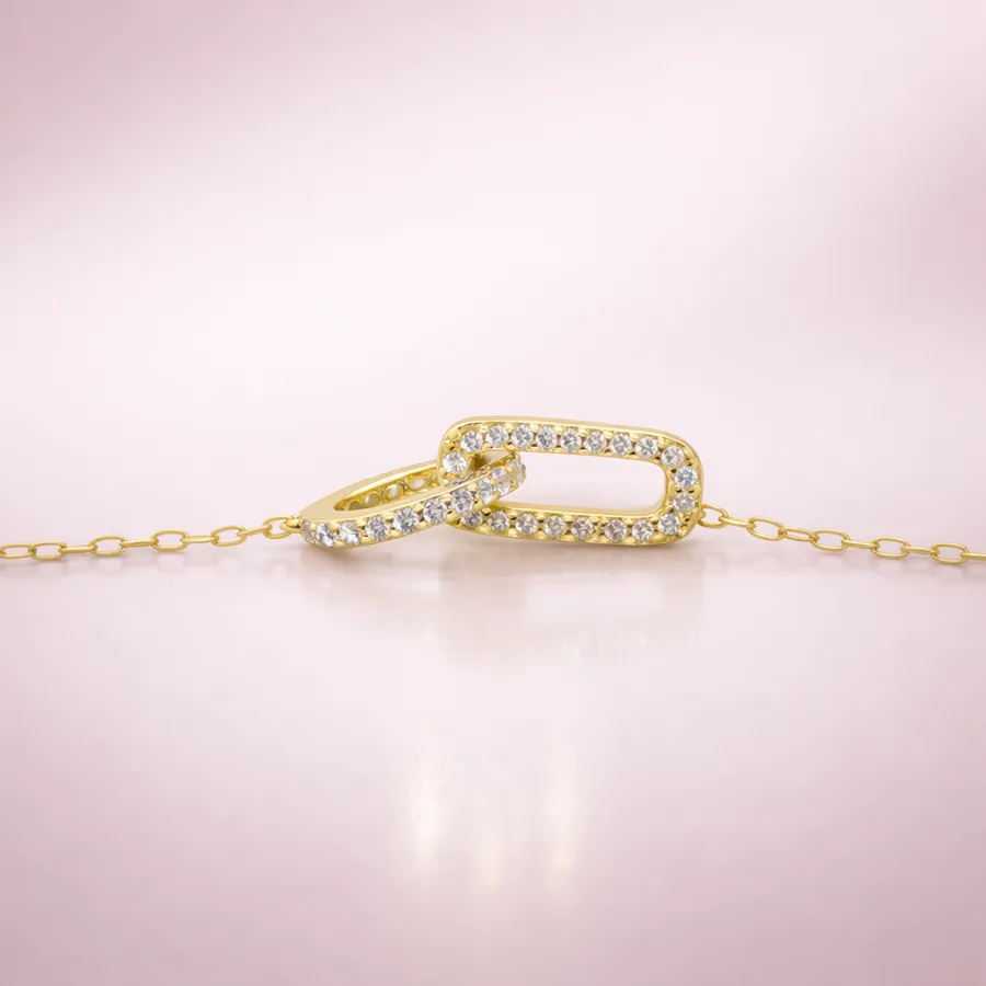 Ce maillon élégant crée un contraste subtil entre la finesse de la chaîne et l’éclat des pierres. Le résultat est un bijou à la fois discret et sophistiqué qui attire naturellement le regard.