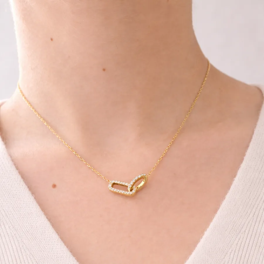Loomira - Collier avec maillon serti de pierres, disponible en finition or ou argent 925
