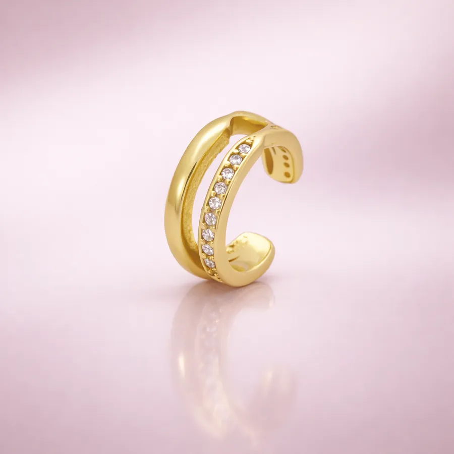 Fléor est une bague ajustable en argent 925 avec finition dorée. Élégante et lumineuse, elle s’adapte facilement à votre doigt pour un confort parfait au quotidien.